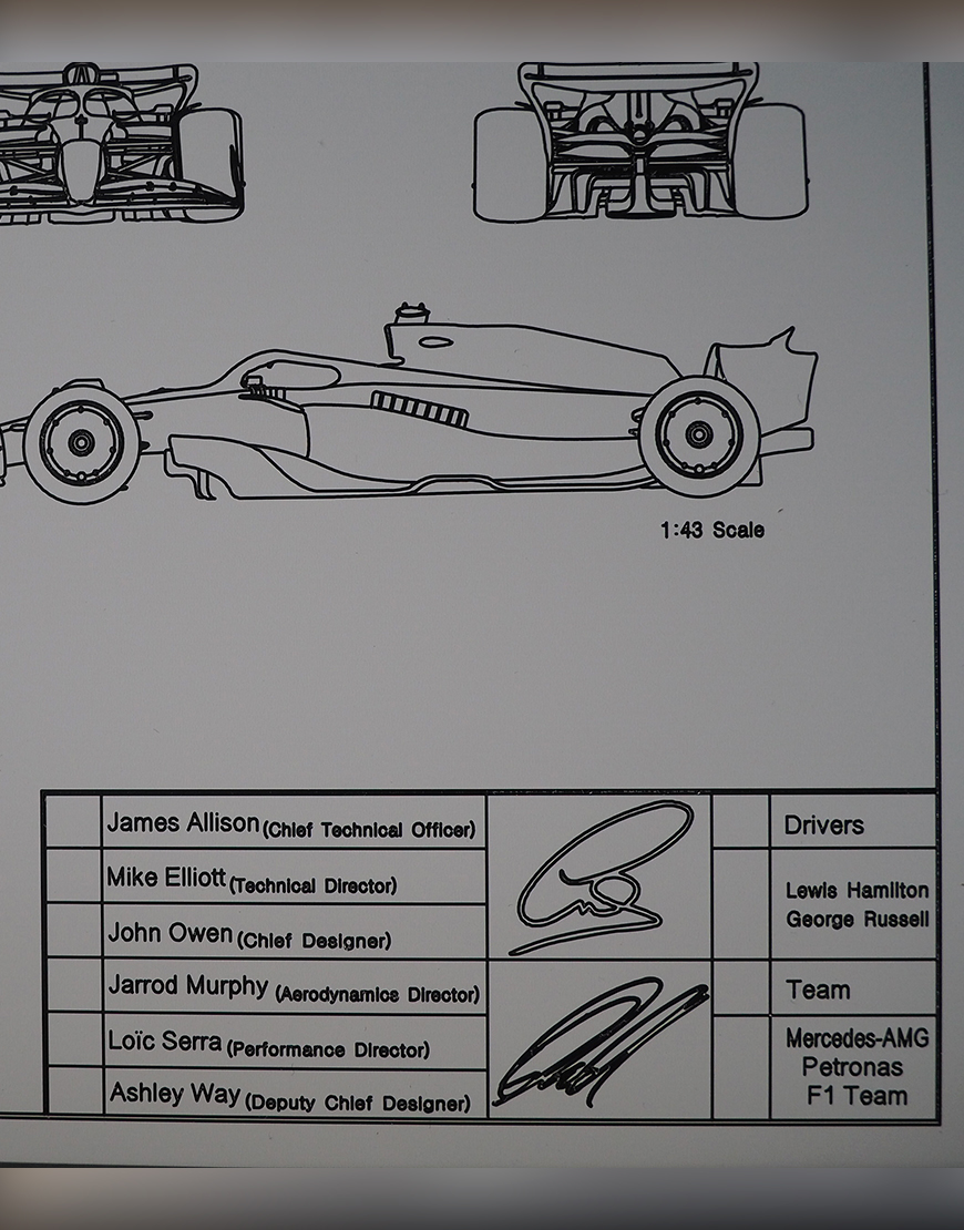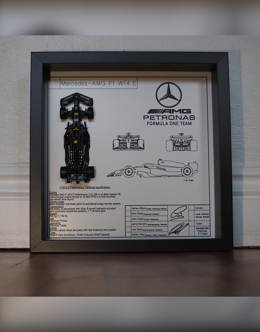 Crafted in Ireland with meticulous precision, this framed edition isn’t just a homage to Mercedes-AMG — it’s an exclusive statement for Formula 1 fans and a must-have for serious 1:43 scale collectors.